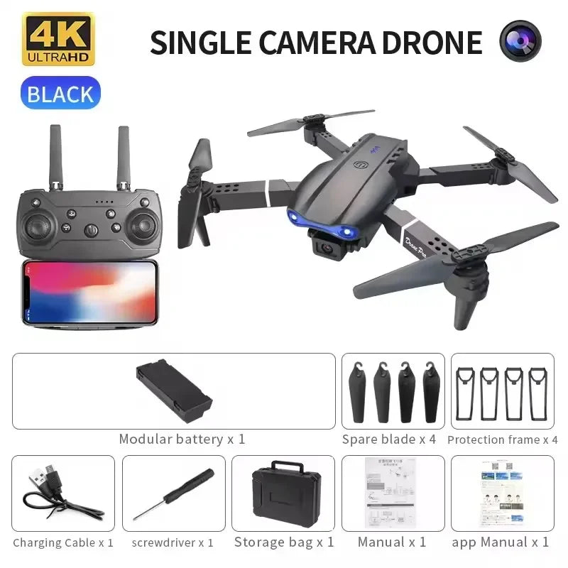The Quadcopter Drone Camera is designed to deliver an exciting and versatile aerial photography experience. Equipped with 4K HD video recording and dual cameras, it captures both aerial and ground images with clarity. Its removable battery allows for easy replacement and convenient travel, offering up to 10 minutes of flight time per charge. Beginners can enjoy hassle-free operation with one-click takeoff, while advanced users can explore special flight modes like 360° rotation. With a smart windbreak feature, the drone maintains stable flight even in breezy conditions, making it perfect for outdoor fun and creative aerial shots.